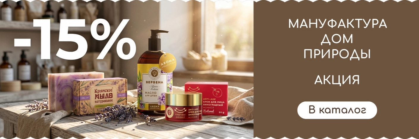 Каждый товар на нашей витрине наполнен натуральными природными компонентами – помощниками вашей естественной красоты. Оставьте за бортом врагов своего здоровья: синтетические ПАВы, химические консерванты, загустители и ароматизаторы, продукты нефтепереработки.
