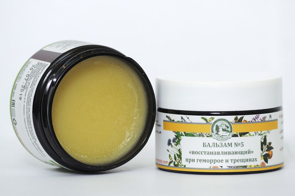 Не раздражает слизистую, является противовоспалительным, антибактериальным, венотонизирующим и успокаивающим средством при различных повреждениях слизистой! Деликатно восстанавливает поражённые участки, подходит для ухода за слизистой носа при простудных воспалительных процессах, так же при различных проявлениях герпеса на лице и губах! Имеет высокую концентрацию питательных компонентов, за счёт чего глубоко проникает в поражённую область = очень эффективное средство для наружного лечения. Лечение геморроя происходит за счёт общего количества факторов, изменение образа жизни в целом для оказания наиболее быстрой помощи организму: правильное/раздельное питание, уменьшение различных физических нагрузок, использование эффективного наружного лечения - Бальзам № 5! ⠀ Если Вы находитесь в поиске наружного средства, стоит обратить внимание на этот бальзам, он станет хорошим помощником для Вас в лечении этого сложного заболевания. Средство превосходно увлажняет и восстанавливает, вследствие чего зарекомендовало себя не только как лечебное средство, но и ежедневное уходовое средство за огрубевшей кожей ног, локтей и т.д.