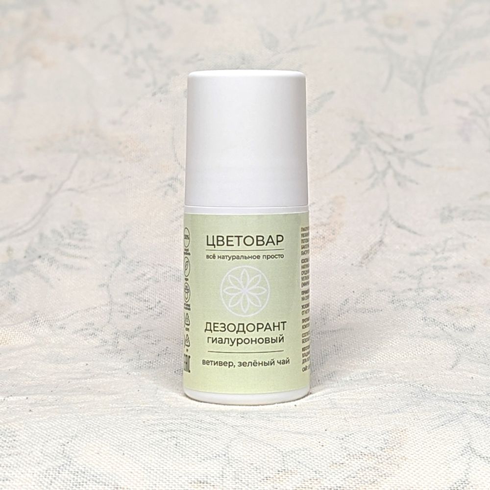 Шариковый гиалуроновый дезодорант "Цветовар" обладает тонким ароматом композиции эфирных масел ветивера и зелёного чая, подходящим как женщинам, так и мужчинам.