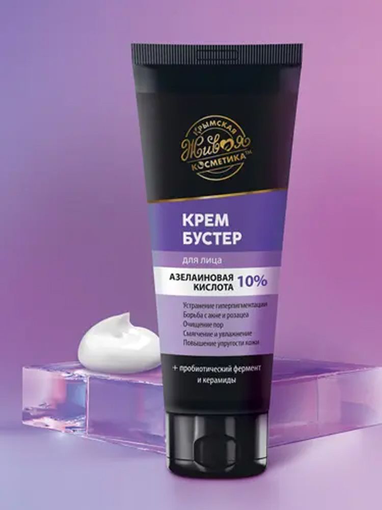 Крем-бустер с содержанием азелаиновой кислоты 10% борется с гиперпигментацией, розацеа, акне и черными точками, нормализует жирность, тонизирует, смягчает и осветляет кожу, оказывает эффект мягкого пилинга.