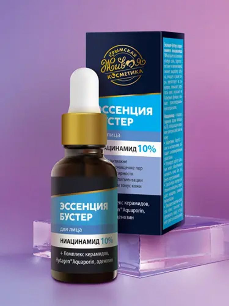 Эссенция-бустер с содержанием ниацинамида 10% убирает воспаления и угревую сыпь, борется с постакне и пигментацией, снижает выработку себума, очищает и сужает поры, препятствует их закупорке, повышает упругость кожи, улучшает ее барьерные функции, снижает трансэпидермальную потерю влаги.