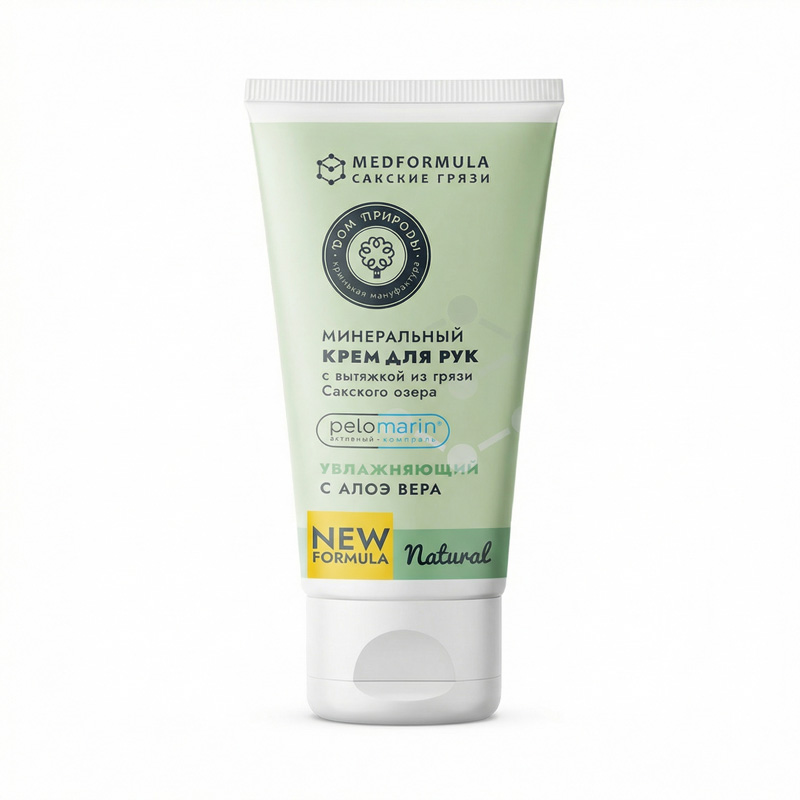 Натуральный крем для рук Увлажняющий с вытяжкой из грязи Сакского озера и алоэ вера.