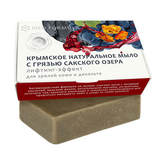 Крымское мыло MED-formula «Лифтинг-эффект» содержит лечебную грязь Сакского озера, дополненную сбалансированным комплексом природных компонентов, разработанным для ухода за зрелой кожей.