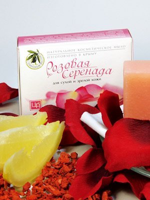 Мыло натуральное ручной работы «Розовая серенада» способствует устранению сосудистого рисунка и куперозов, отечности и темных кругов под глазами, припухлости век.