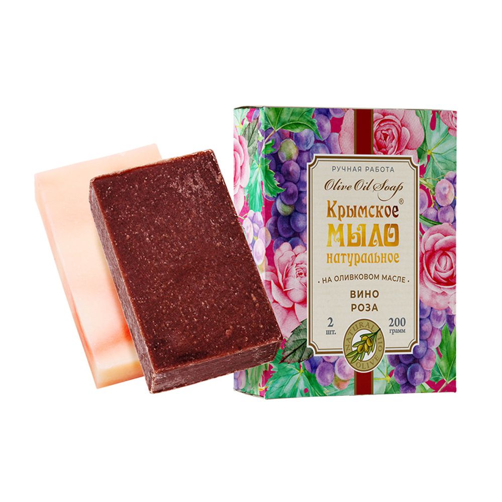Два кусочка натурального крымского мыла на оливковом масле ручной работы — "Вино" и "Роза". Сварено с любовью и заботой.