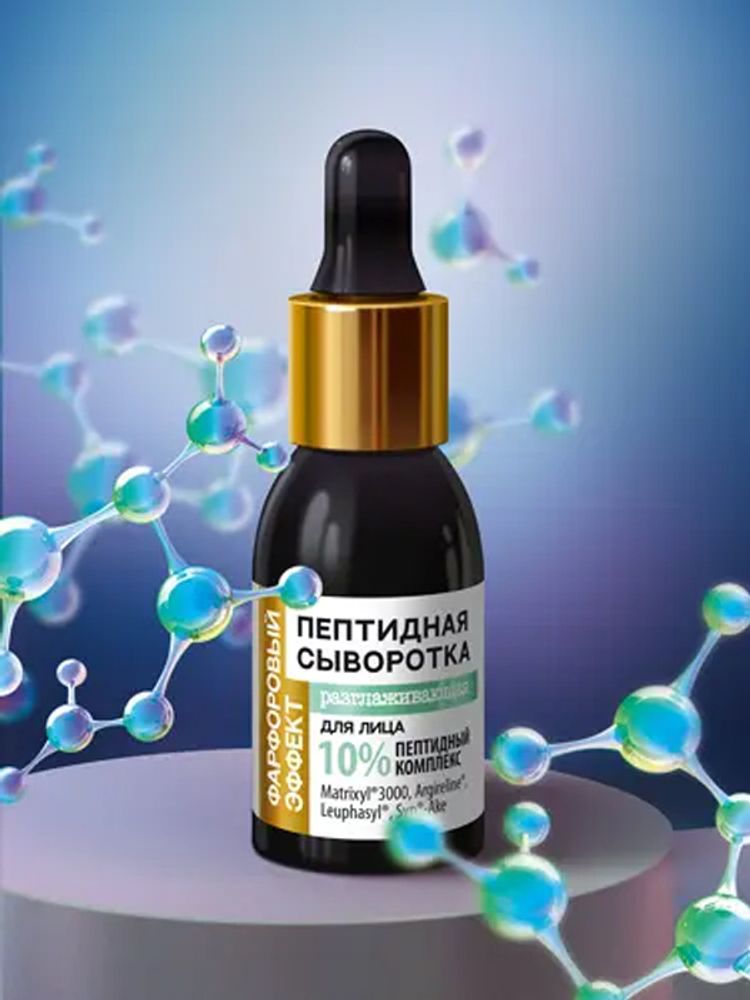 Сыворотка для лица с комплексом пептидов оказывает мягкое миорелаксирующее действие и лифтинг-эффект, разглаживает морщины, восстанавливает эпидермальную матрицу, предотвращает старение кожи, повышает ее упругость.