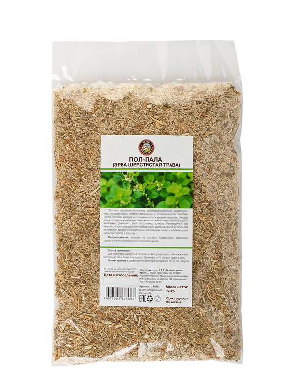 Пол-пала оказывает мочегонное, противовоспалительное, антисептическое, успокаивающее, слабое слабительное и спазмолитическое действие. Настой пол-палы выводит из организма соли и вредные вещества, очищает почки от песка, нормализует обмен веществ, стабилизирует работу желудка и кишечника, уменьшает риск образования тромбов.