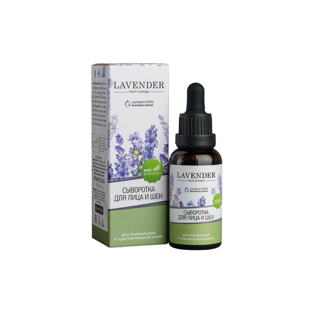 Лавандовая сыворотка для увлажнения и снятия воспаления нормальной и чувствительной кожи. Экстракт лаванды обладает противовоспалительным и успокаивающим действием. Экстракт алоэ снимает раздражение, увеличивает синтез коллагена, тонизирует и увлажняет кожу. Провитамин В5 ускоряет процесс регенерации клеток кожи. Гиалуроновая кислота восстанавливает водный баланс кожи.
