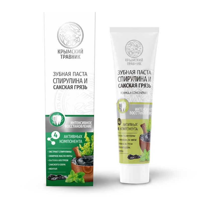 Формула пасты основана на сочетании биологически активных экстрактов, минеральных соединений и витаминов. Экстракт спирулины насыщает ткани микроэлементами и поддерживает их естественные восстановительные процессы. Поровой раствор сакской иловой сульфидной грязи способствует улучшению состояния дёсен и слизистой. Натрия монофторфосфат участвует в реминерализации эмали, а мягкие очищающие компоненты удаляют налёт без повреждения поверхности зубов. Паста подходит для ежедневного применения и комфортна даже при чувствительных дёснах.